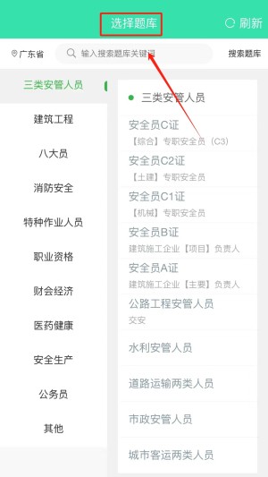 3、点击“选择题库”按钮,选择适合您考试需求的题库。根据考试科目和需求选择合适的题库进行针对性的练习。