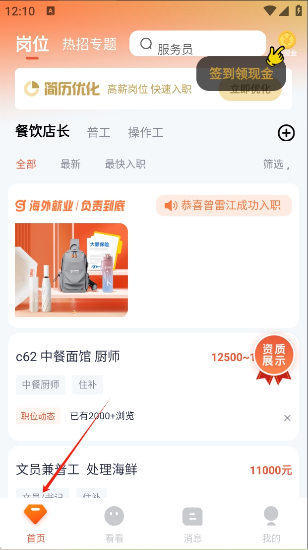 1、在首页选择“岗位”选项,浏览不同职位的招聘信息。