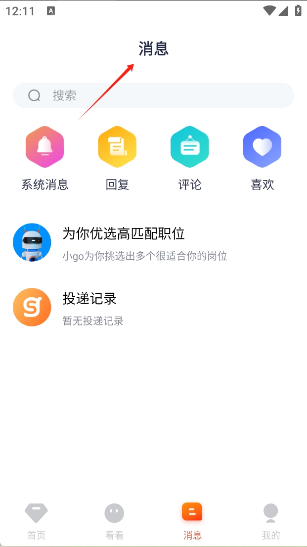3、在“消息”页面,搜索并查看系统消息、回复、评论等。