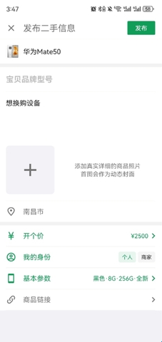 3、输入你想出手的原因及出手价格,可添加设备图片。