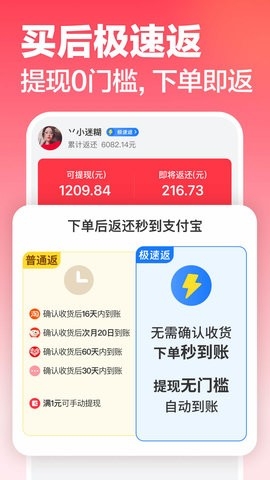 网站一般比其他返利类网站高5-10个百分点的返利,返利最快30分钟内到账;