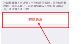 5、然后选择“解除关系”。这时候小恩爱会提醒一些相关的,特别是情侣之间的一些聊天记录什么的,都会被永久清空。