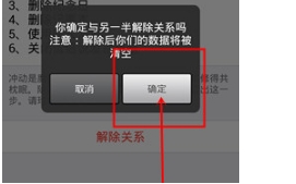 7、接着会跳出确认框,“你确定与另一半接触关系吗”,如果下定决心就点击“是”。之后所有的记录都清空。