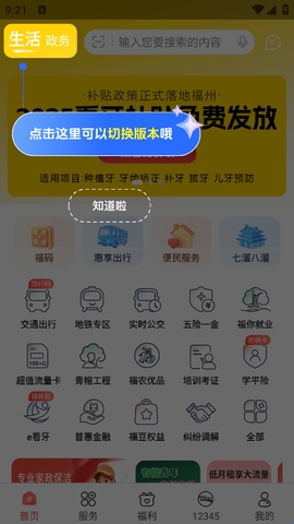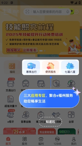 3、这里是三大应用专区,里面聚合了e福州服务。