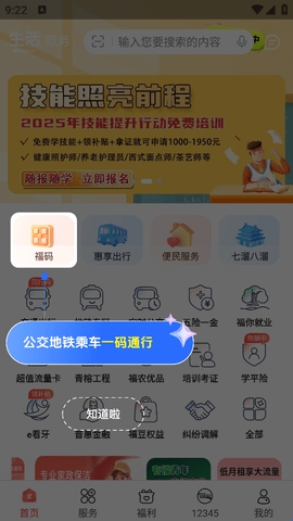 2、乘坐公交地铁的时候点击“福码”还可以一码通行。