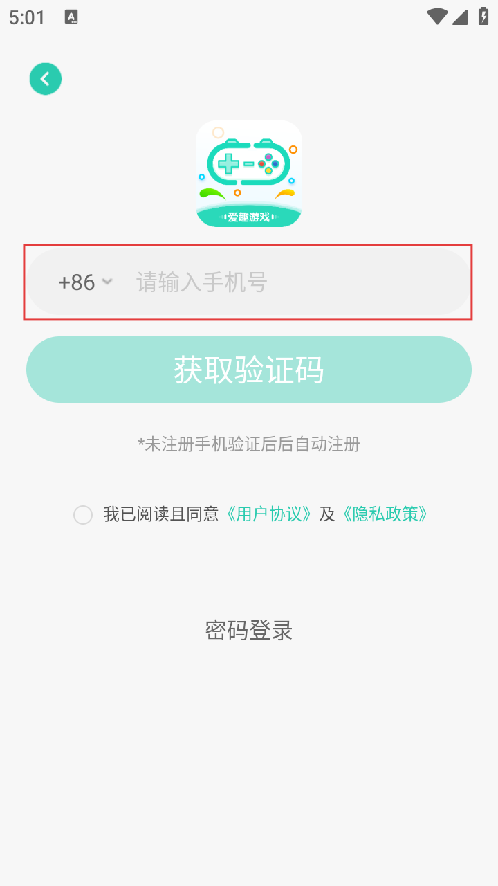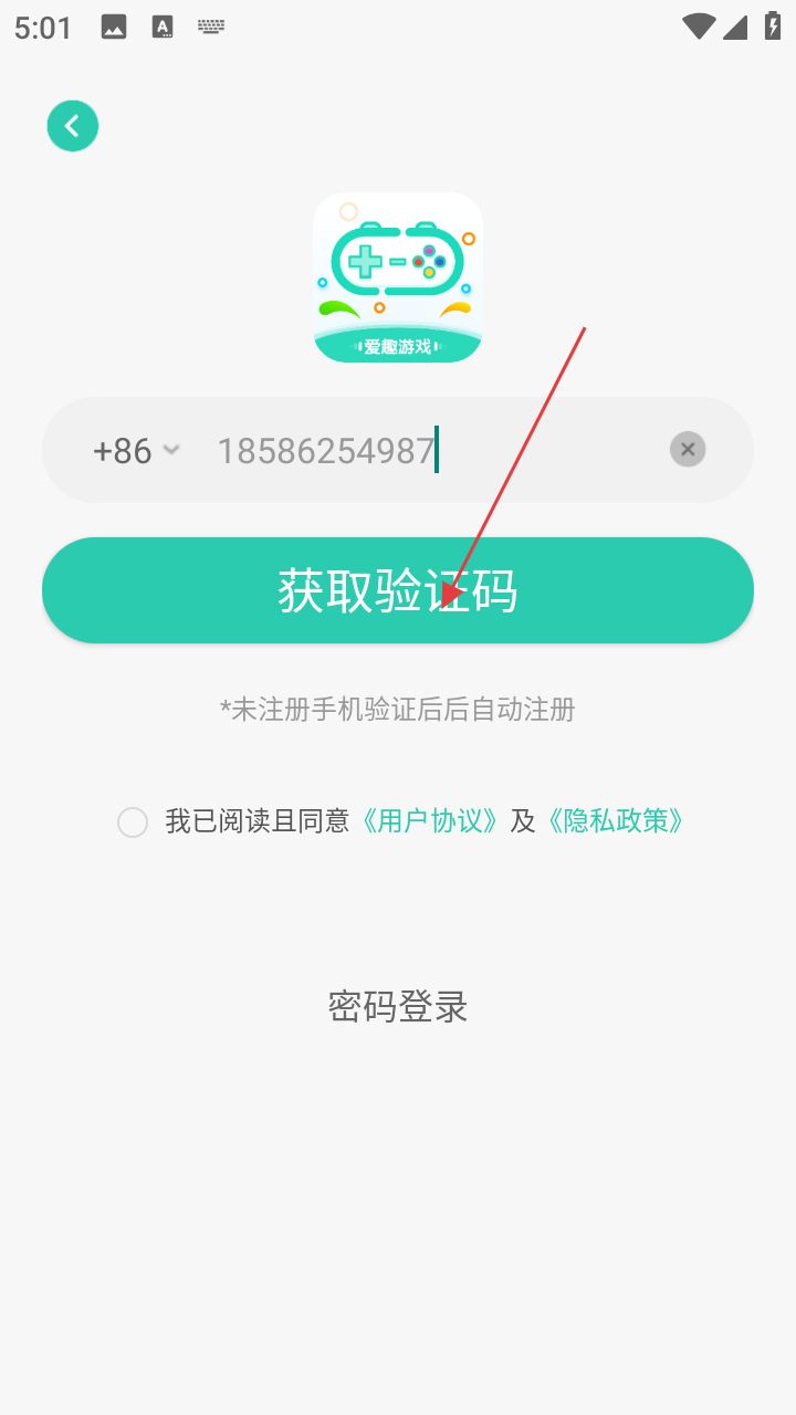 3、在登录注册界面,若要通过手机验证码登录注册,输入手机号码,勾选同意协议后点击【获取验证码】。