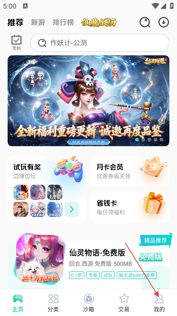1、在爱趣游戏盒首页,若想进入个人相关页面,点击底部【我的】,切换到“我的”页面。