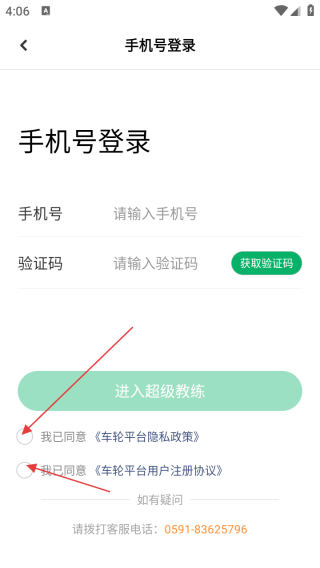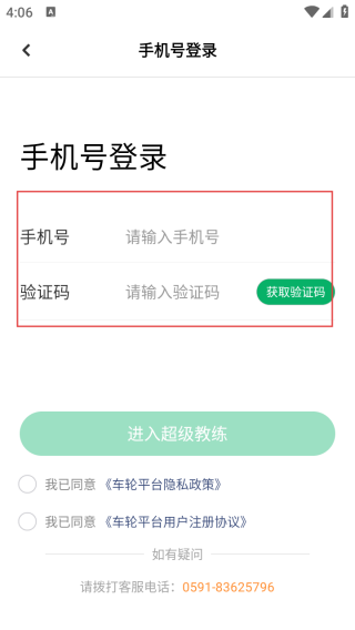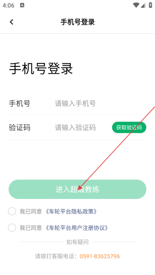 4、确认手机号、验证码及协议勾选无误后,点击【进入超级教练】按钮完成登录。