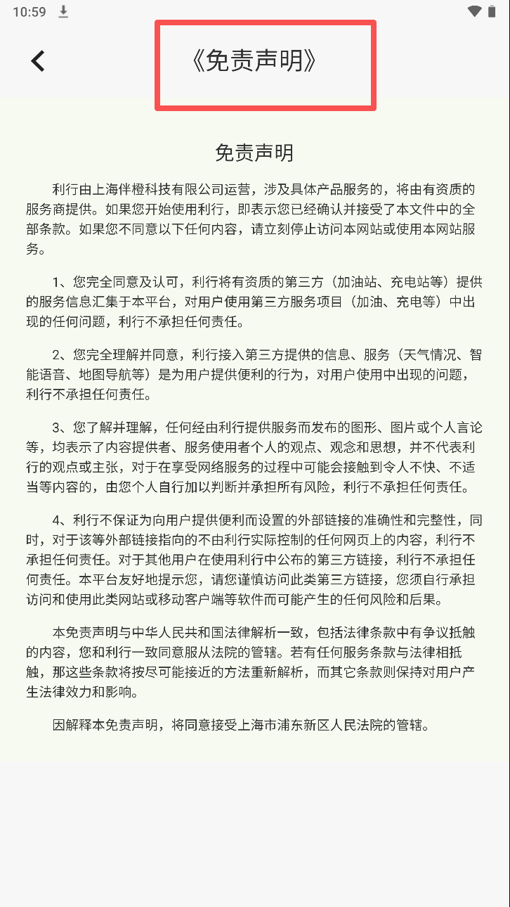 3、阅读并同意免责声明。查看免责声明内容,了解相关责任和义务。
