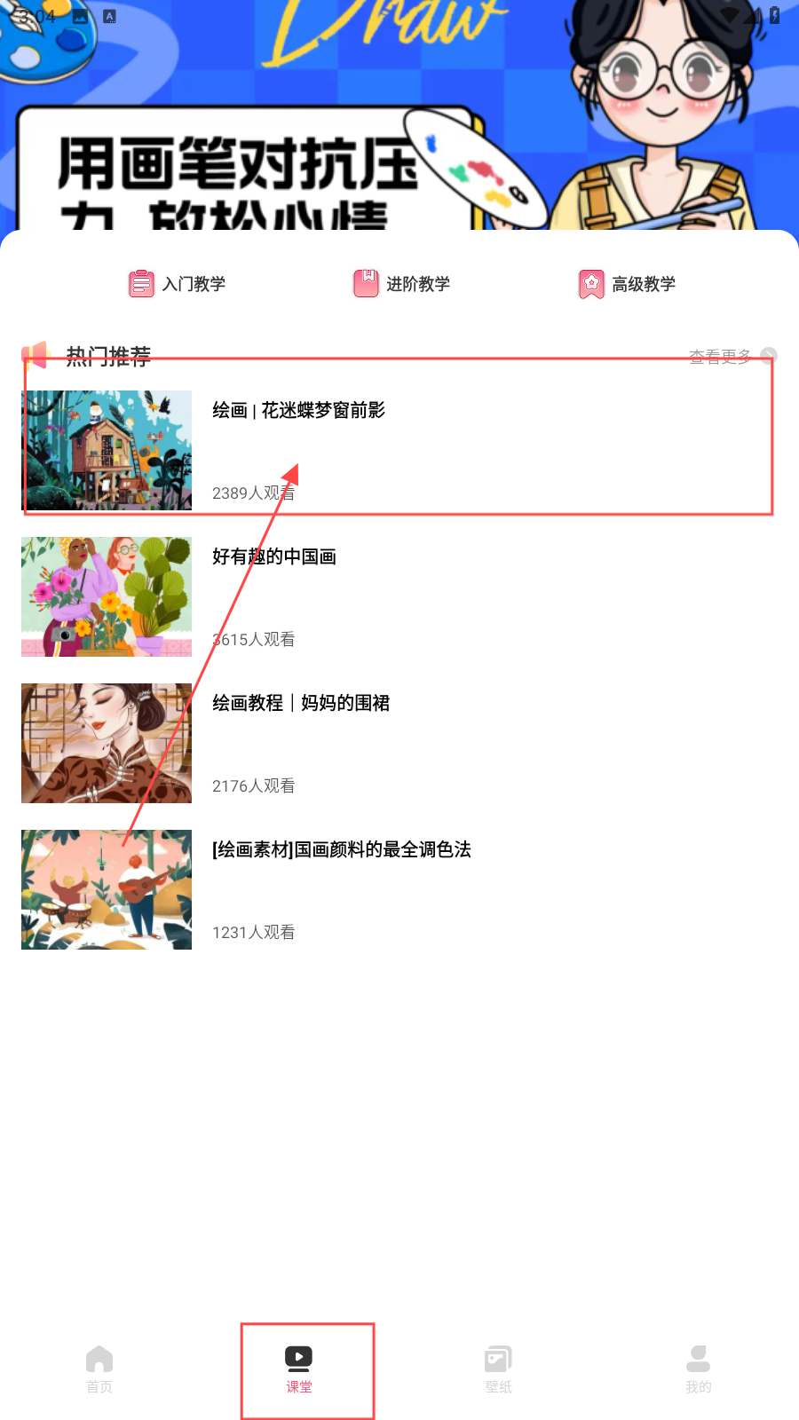 1、打开应用,在课堂页面,可以选择想看的文章。