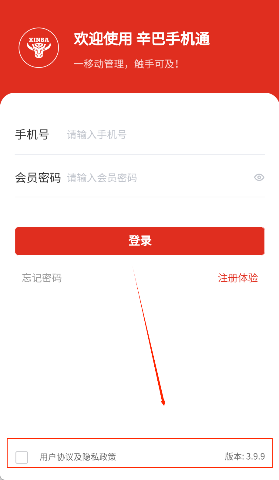 1、打开软件首先会看到登录界面,在白色输入框里填写手机号和会员密码,点击红色登录按钮就能进入主界面,忘记密码点下方链接找回哦。
