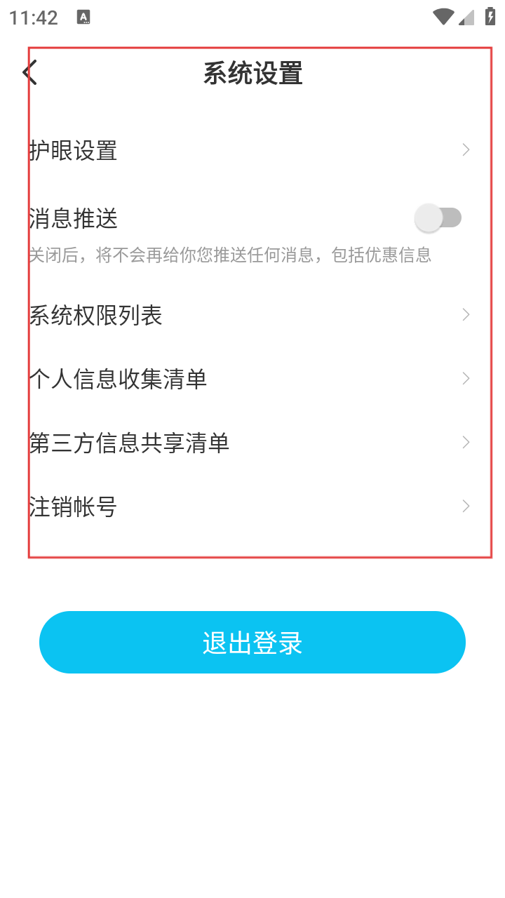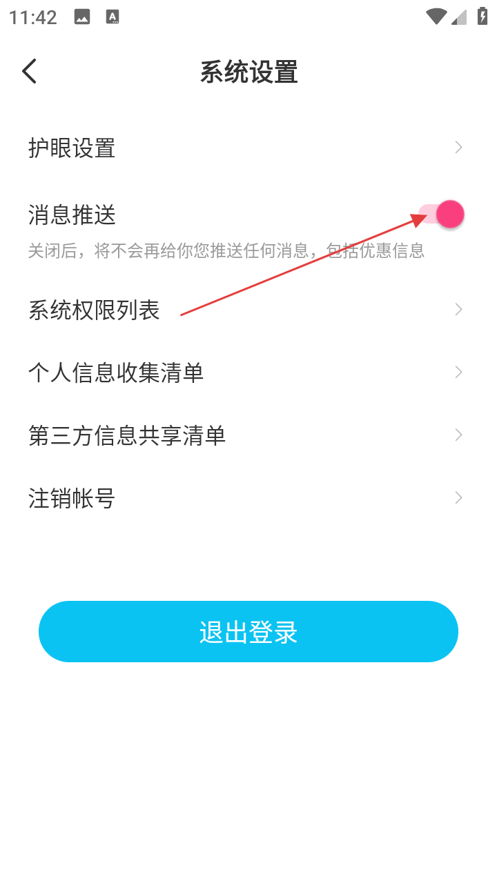 4、在【系统设置】中,关闭【消息推送】后,将不再接收包括优惠信息在内的任何推送消息。