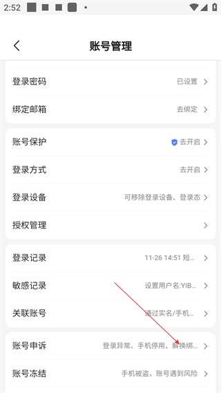 4、在账号管理页面,除了设置密码、绑定邮箱,还能通过【账号申诉】功能,解决登录异常、手机停用等账号问题。