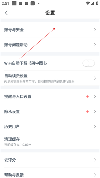 3、在设置页面,点击【账号与安全】选项,可进入账号管理界面,进行密码、绑定信息等安全配置。