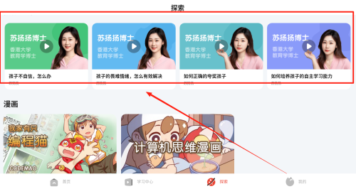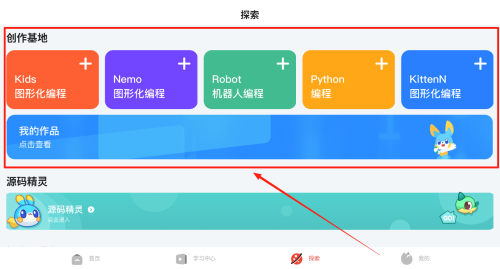 1、首先,搜索编程猫机器人并下载安装,打开后进入主界面,用户可根据自己的学习需求选择相应的课程进行学习。