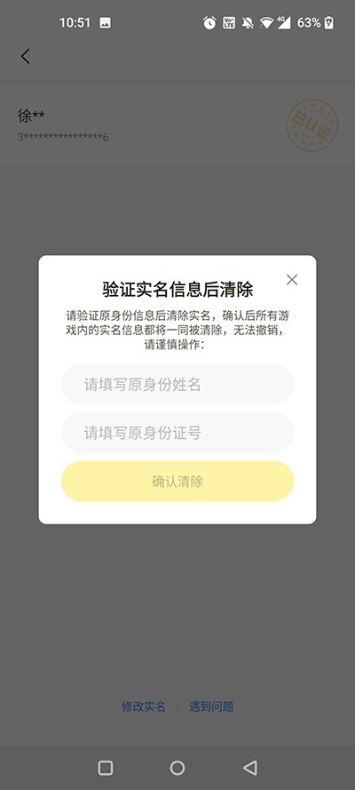 5、最后填写你原来的实名认证身份证信息,最终填好修改后的实名认证信息便可以更改完毕了!