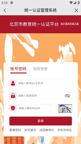 说明:北京市所有可通过教育ID登录的官方平台,均为同一账号密码,如您在其他平台修改过教育ID的登录密码,须使用修改后的密码登录京学通APP。