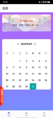 1. 简约清新:紫雨天气采用简约清新的设计风格,界面简洁明了,不会过多地干扰用户体验,使用户集中于获取天气信息;
