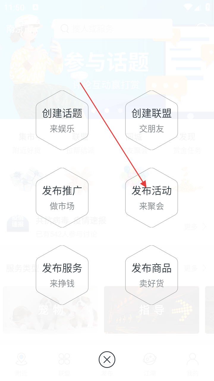 3、在发布选项中,点击【发布活动】,进入活动创建流程。