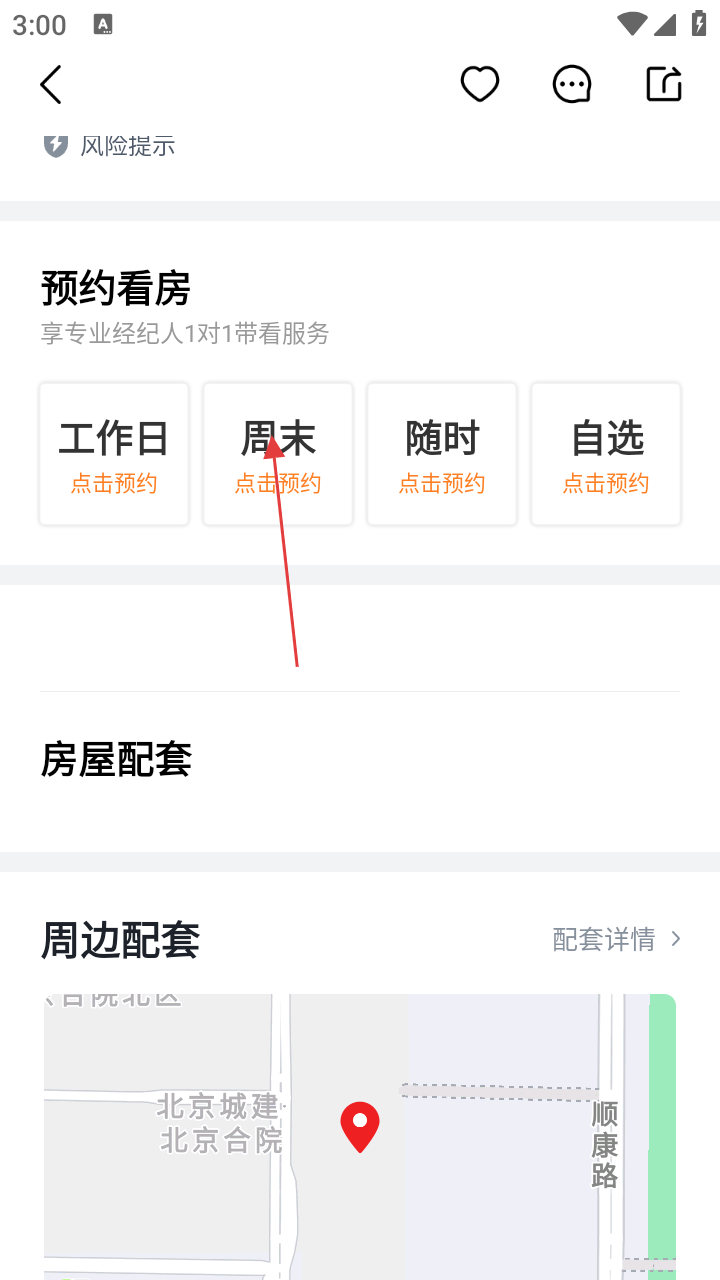 4、在页面中找到【预约看房】板块,选择看房时间(工作日、周末、随时、自选等)进行预约。