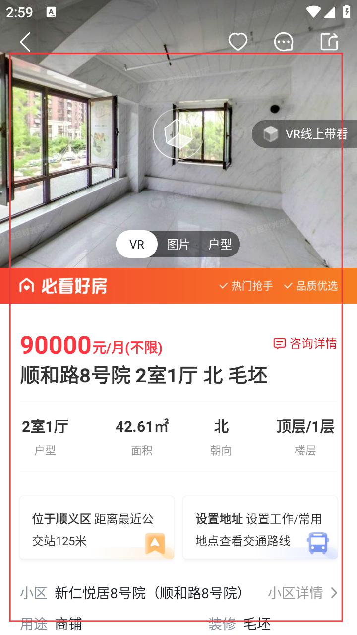 3、进入房源详情页,查看房屋信息(户型、面积、朝向等)。
