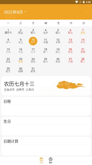 3.专业在线查日常禁忌,帮用户选好日子,结婚,开市,旅游,一切顺利;