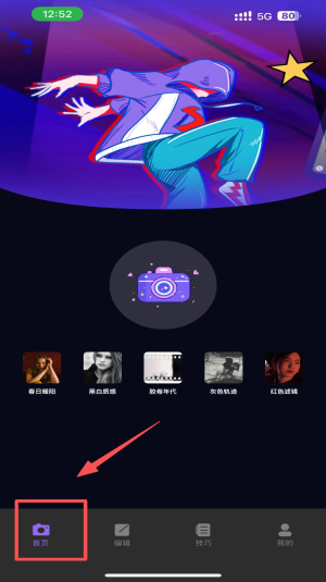 1、在首页点击“首页”图标,进入应用的主要功能界面。