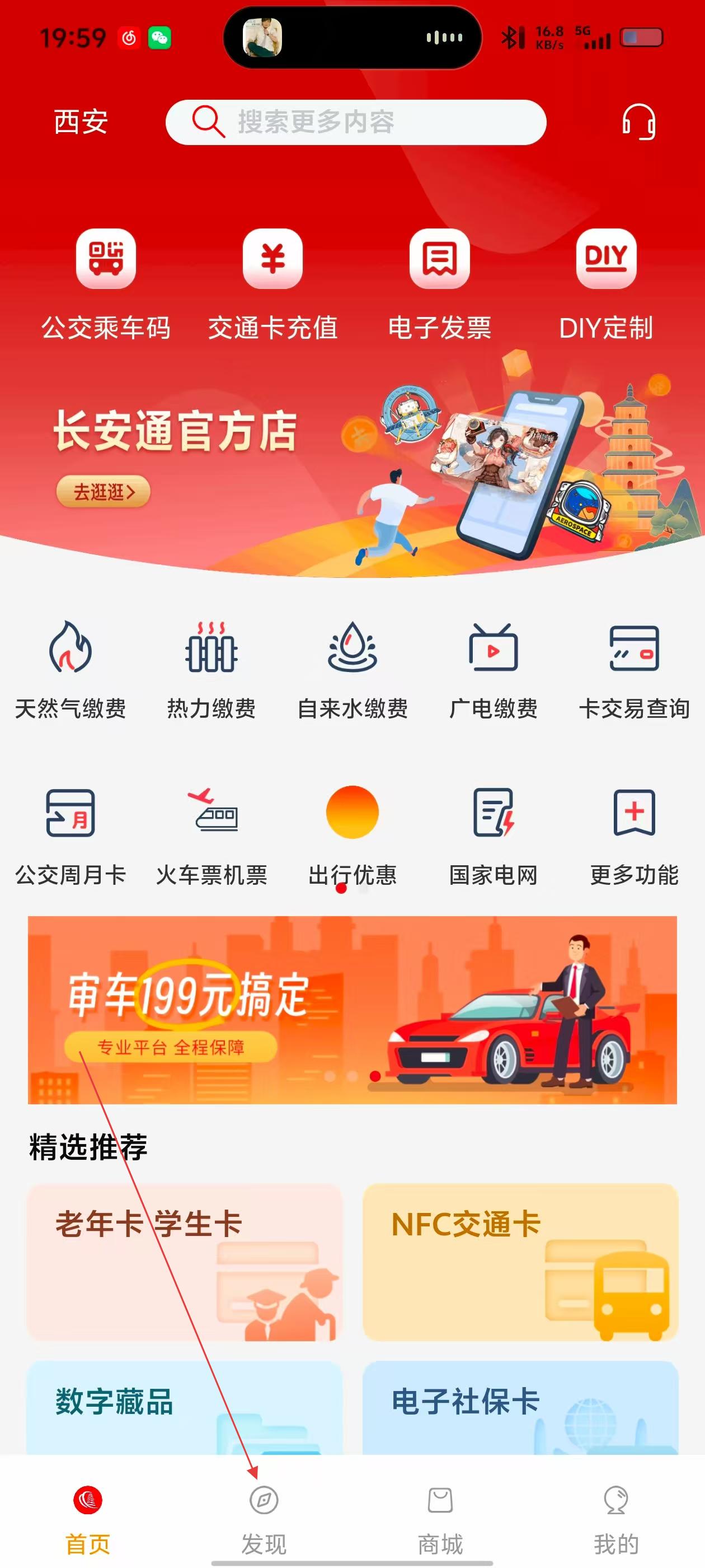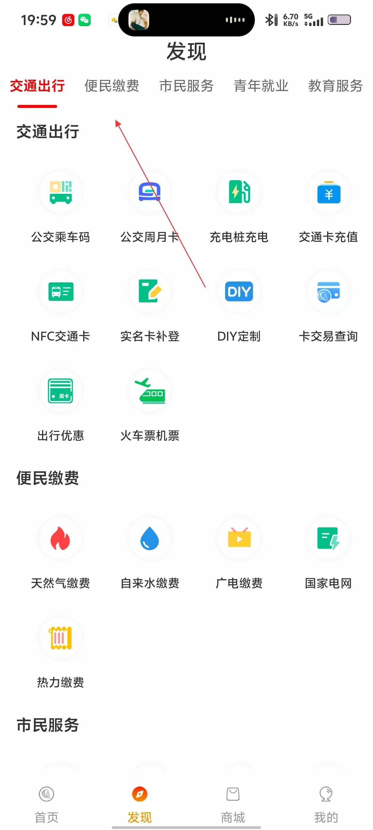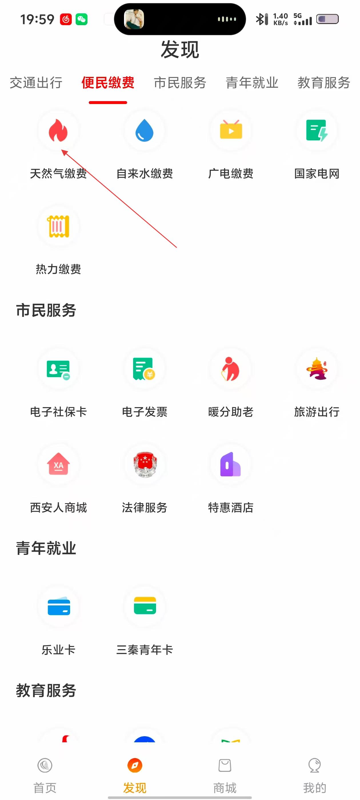 2、在发现页,选【便民缴费】,找【天然气缴费】。