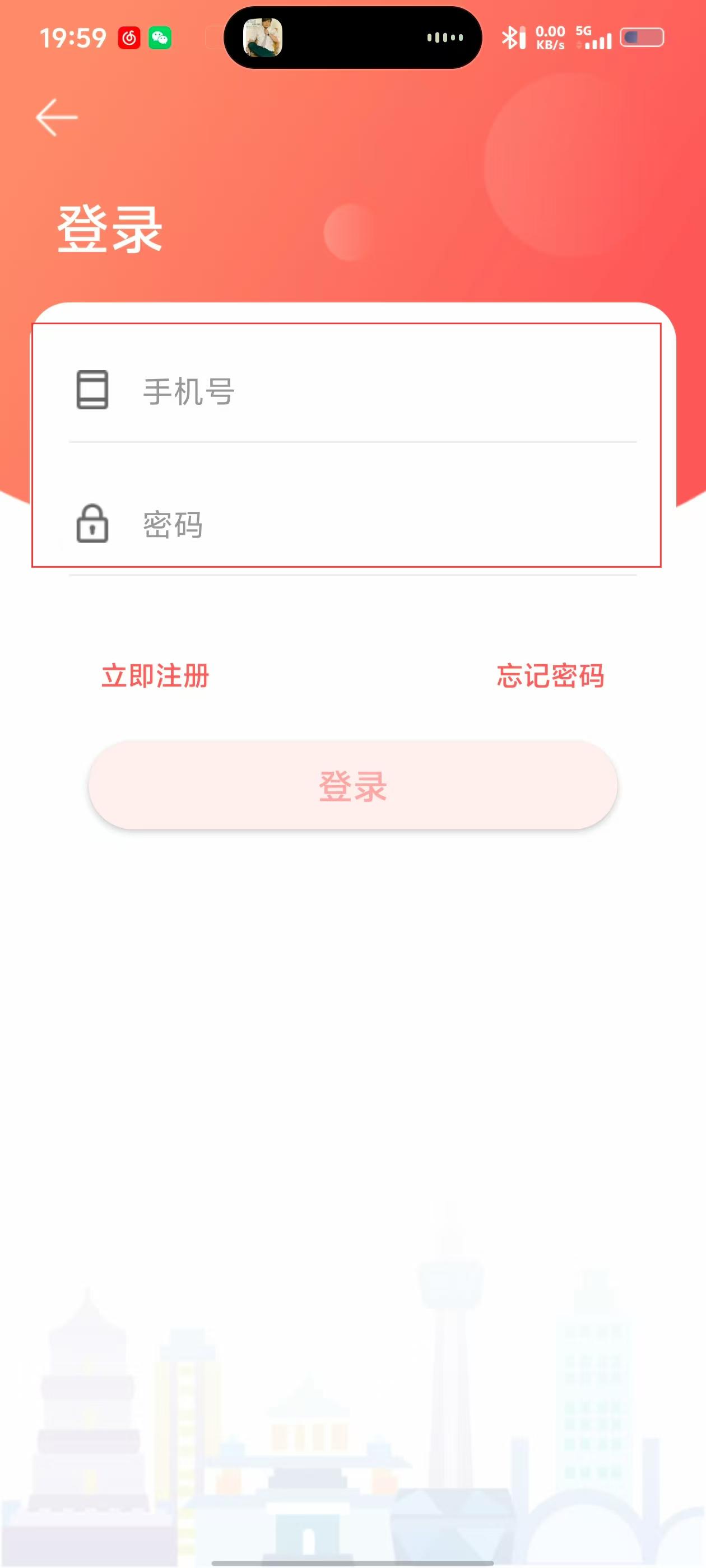 3、点击【天然气缴费】,跳转登录页,填手机号、密码。
