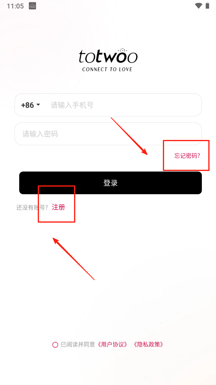 1、在登录页面输入手机号和密码,若忘记密码点击“忘记密码?”找回。
