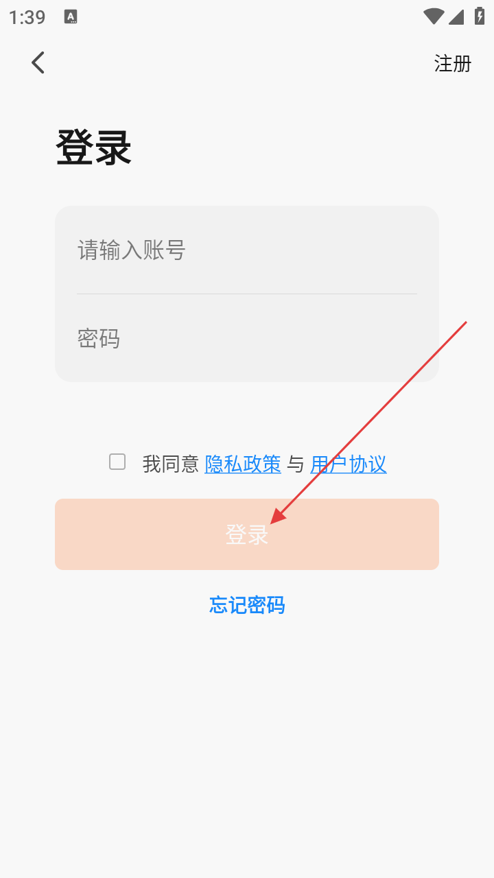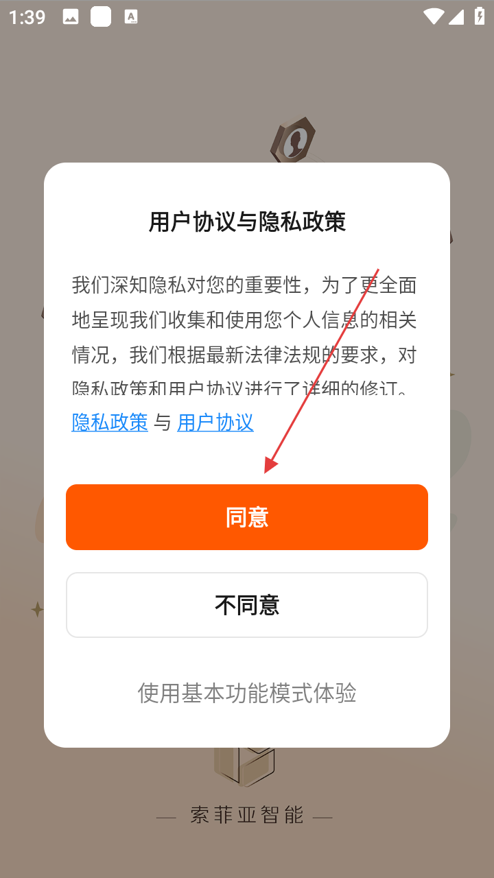 1、打开应用阅读【用户协议与隐私政策】弹窗后点击【同意】,接受条款。