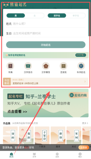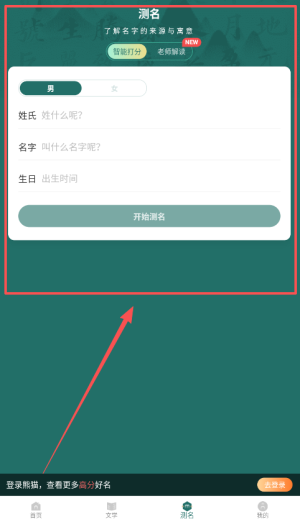 2、您可以选择取名或者测名功能,根据需求输入信息,如姓氏,出生日期,系统将进行智能匹配。