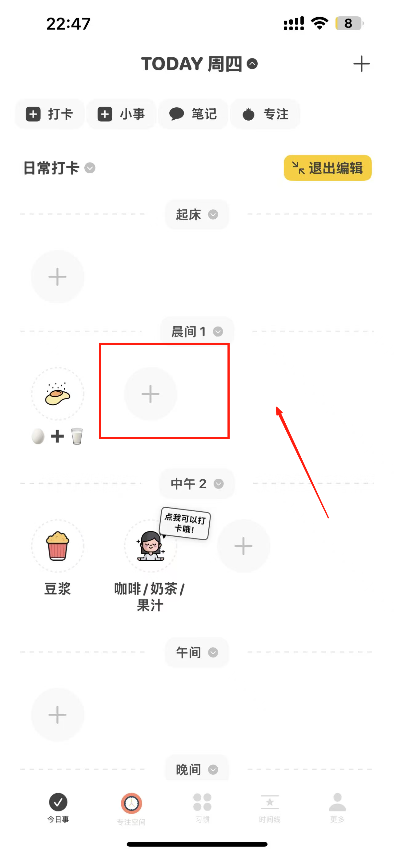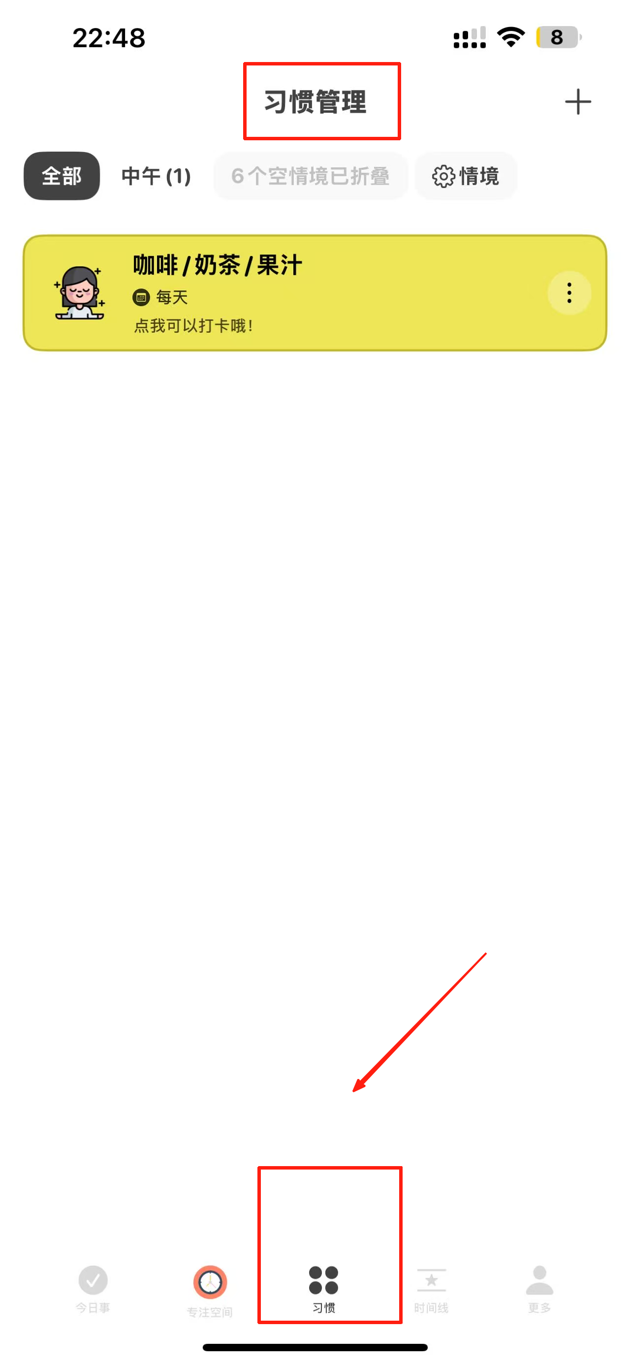2、在“习惯管理”页面查看和管理已创建的习惯打卡项目。