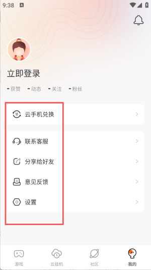 4、点击底部 “我的”,在个人页面选择对应功能入口,完成云手机兑换等操作。