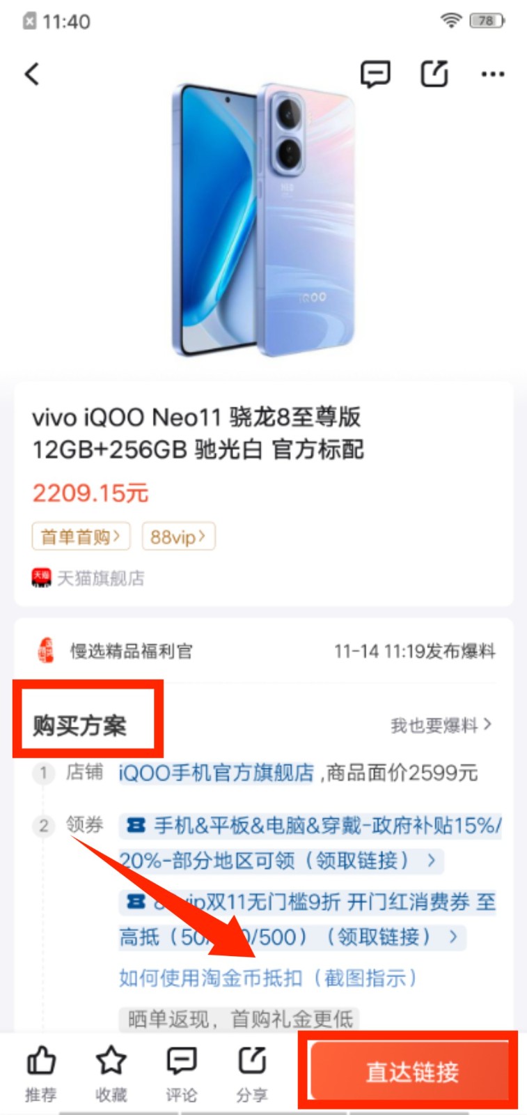 3、找到心仪商品后,点击 “直达链接”,查看详细购买方案并进行选购。