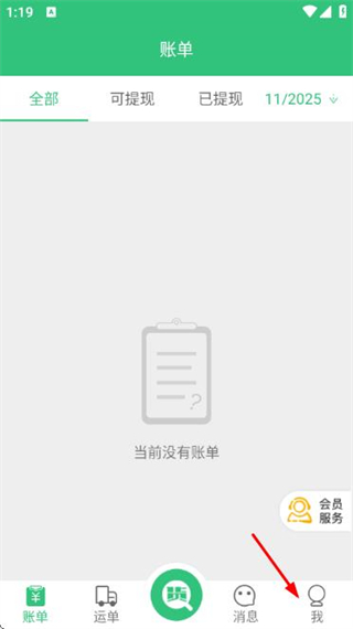 1、在该账单页面点击底部的“我”,进入个人中心页面。