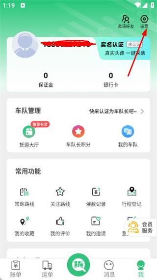 2、在个人中心页面点击右上角的设置,进入设置页面。