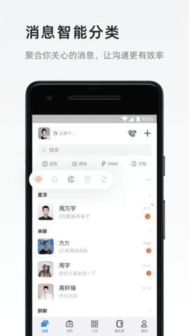 2、最开始用钉钉是公司的要求,现在是我自己主动的使用,后来经过了解这个软件相当强大,可以建立公司管理群,还可以设置老板和行政等不用角色权限,最重要的是部门通讯录的功能,可以很便捷的联系不同部门的人员,工作状态和部门分化都很详细,真的太好用了,不用再到处找联系方式了。