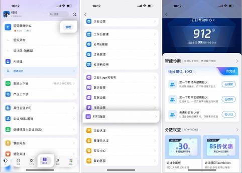 1、手机端钉钉 > 通讯录 > 组织名称旁 管理 > 钉钉指数
