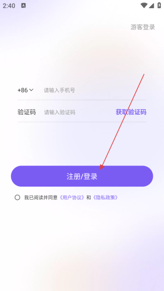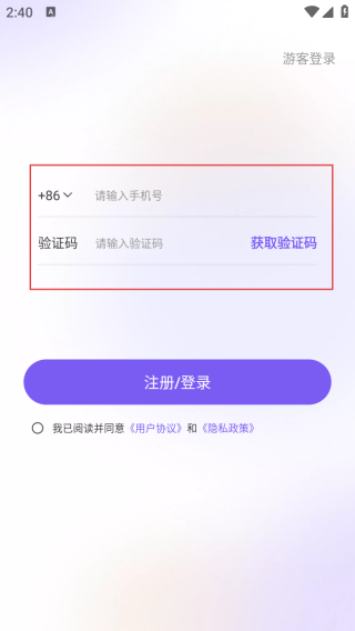 2、进入登录界面输入手机号和验证码。
