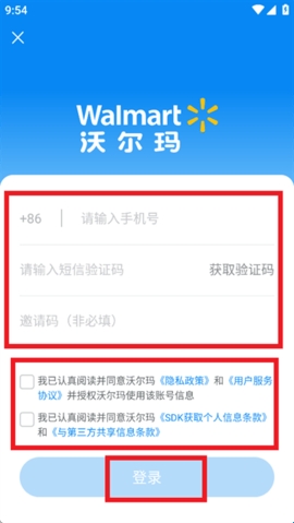 注:未注册手机号自动创建沃尔玛账号