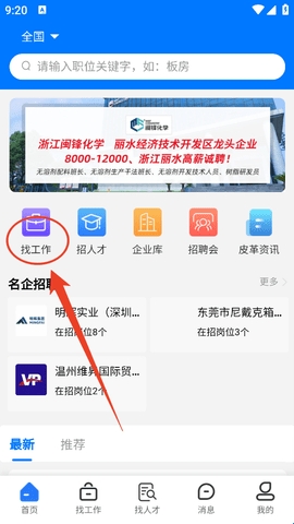 1、进入软件后,点击首页这里的“找工作”。