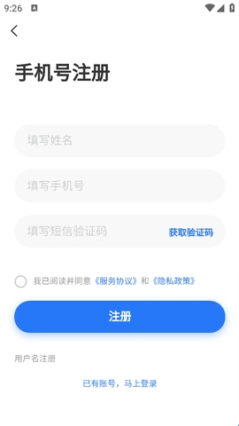 4、然后填写姓名,输入手机号和验证码,确认无误后点击“注册”就行了。
