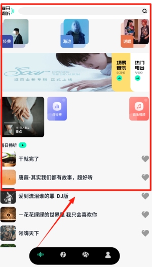 1、下载安装金曲之王红包版,完成注册后即可进入主界面,丰富的音乐库,轻松找到感兴趣的曲目。