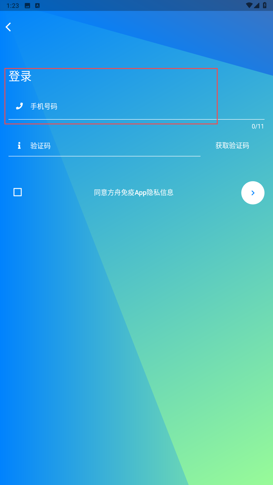 1、打开应用,填写手机号。