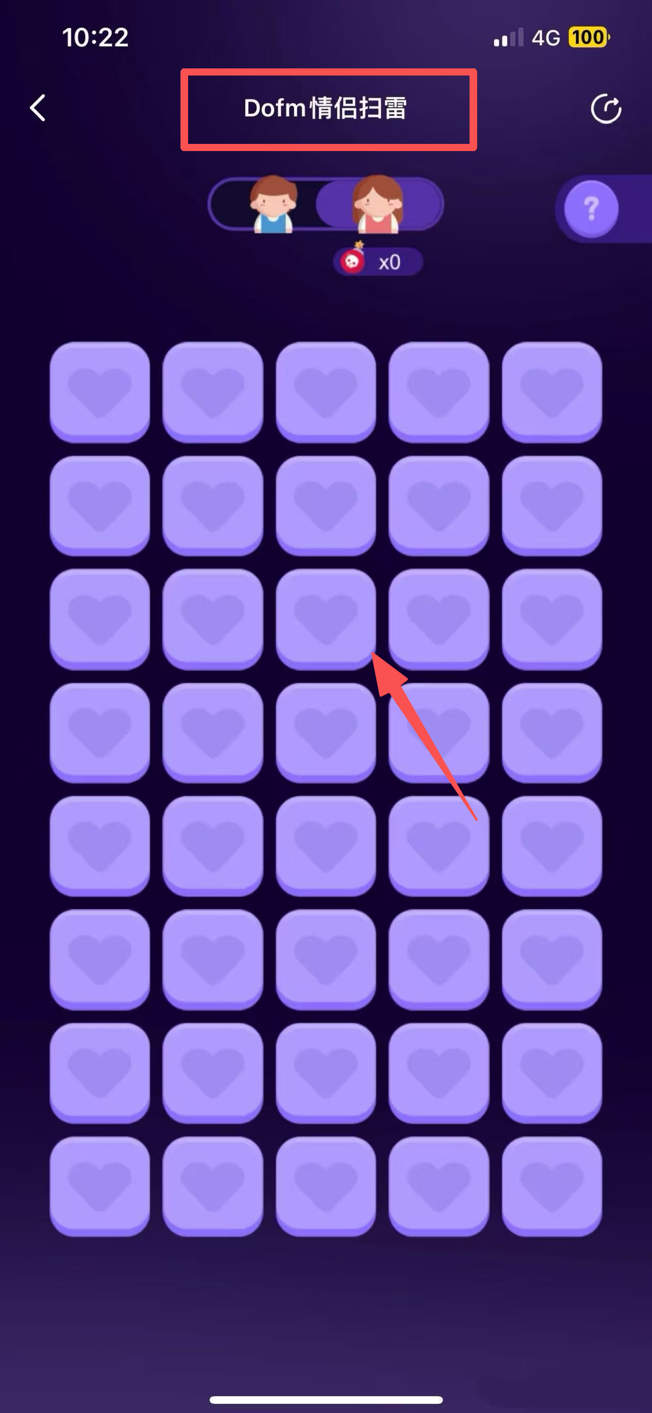 4、在情侣扫雷页面,点击任意心形图标开始游戏。