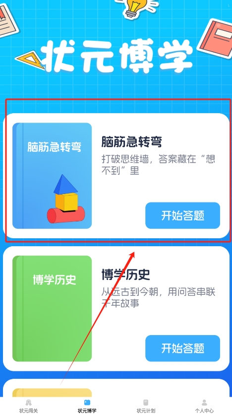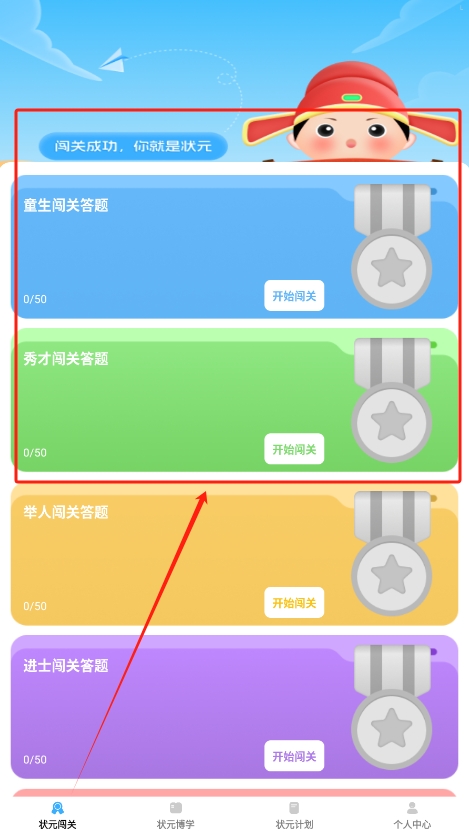 2、接下来,选择感兴趣的闯关游戏,根据自身水平逐步挑战,享受从童生到状元的成长过程。