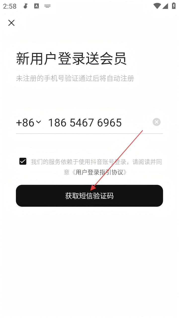 3、在新用户登录送会员页面,输入手机号,准备进行后续验证步骤。