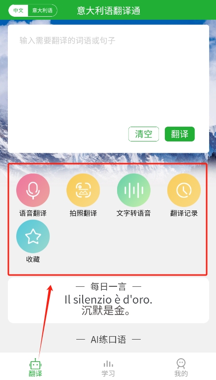 意大利语翻译通为用户提供了一整套翻译和学习的解决方案,通过其丰富的功能和便捷的操作,帮助用户克服语言障碍,提升交流能力。无论是翻译日常对话还是学习意大利语,都能满足用户的不同需求,成为学习旅程中的得力助手。