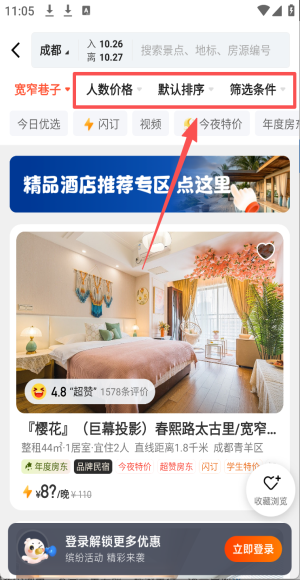 3、在搜索结果中,点击“今夜特价”筛选优惠房源。